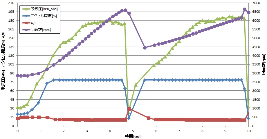 | 立ち上がり[3500rpmあたり] | 120kPa | 135kPa |