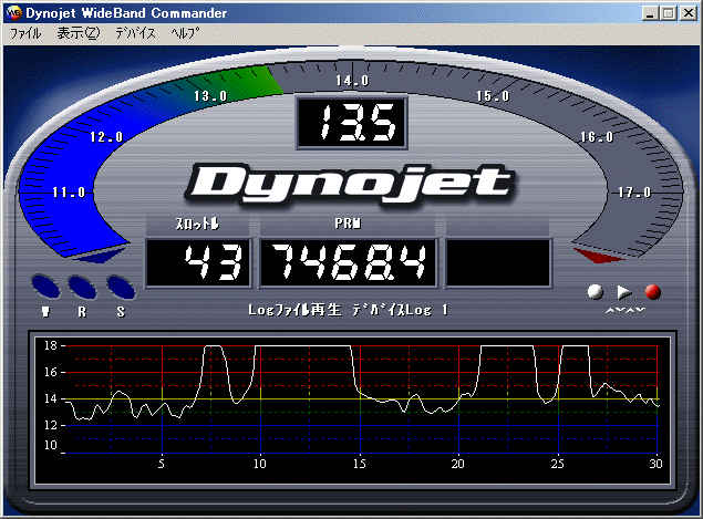 CBR1000RRは燃料供給方式がインジェクションのため簡単にセッティング変更が可能だ。それを自分でやるためには実際の空燃比(A/F比)を計測する必要があるので,A/F計&データロガーWideBandCommander導入編でデータロガー付きのA/F計WideBandCommander(ワイドバンドコマンダー)の購入・取付をおこなった。さぁ,それでは解析を始めよう。