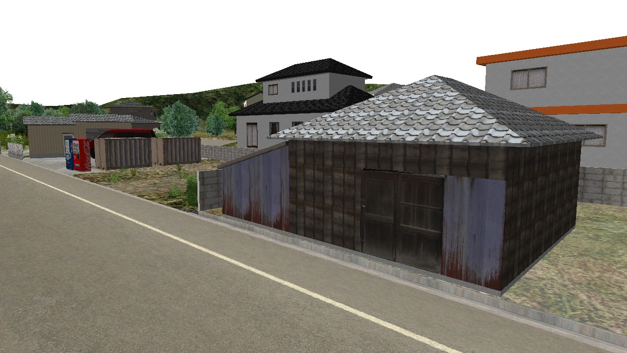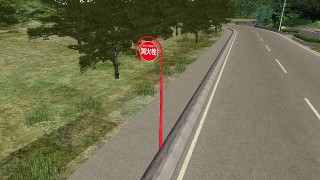 新規作成のUターンポイントはここだ。現実世界ではこんなところでUターンして東コースを走るヤツはいないけど,Y方見展望台をピットにしてあるのでここでUターンさせることに。スタート直後の混乱している場所なので,『譲り合いの精神』を持ってないと大惨事が発生する可能性あり。