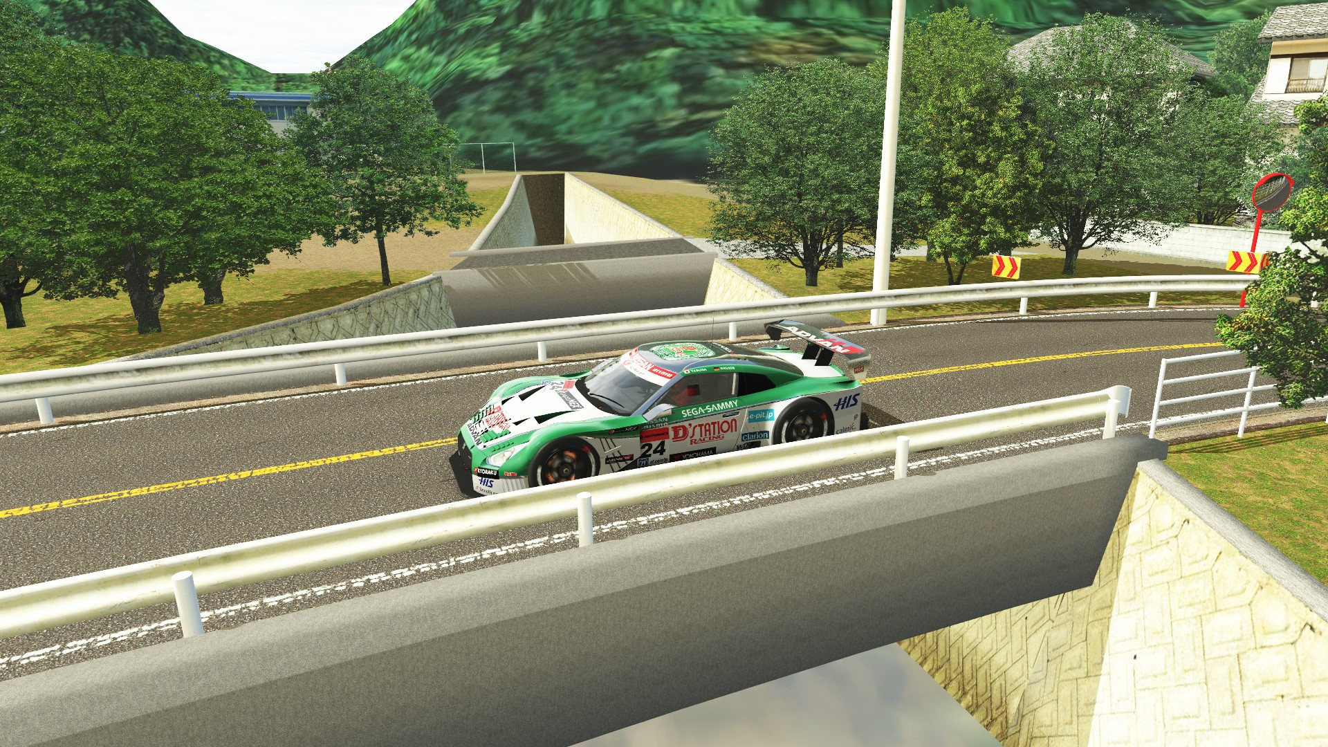 前バージョンでも採用していたコース脇地面のシェーダーの適用範囲を拡大し、衛星画像だけでない表現に変更。ついでに田植えもおこなって、日本らしい風景の再現感をアップ?