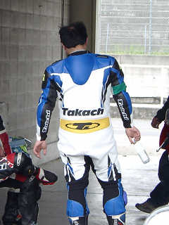 TIサーキット走行会(第二弾)にて,1回目のセッション終了後に撮影。「体が水分を求めてる~」と強がりをいって,動悸・息切れを静めるためにスポーツドリンク片手にピットを徘徊する姿であった。